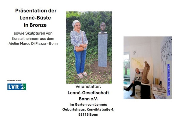 Im Garten des Lenné-Hauses ist eine Ausstellung mit der neuen Lenné Büste von Adelheid Rommel und weiteren Skulpturen von Schülern des Künstler-Ateliers