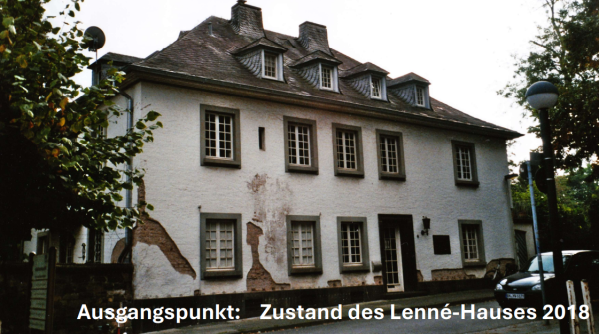 Unser Projekt "Neugestaltung des Gartens am Lenné-Haus" geht jetzt auf die Zielgerade. Die regionale Kulturförderung des LVR hat uns die Förderung zugesagt. Die denkmalrechtliche Erlaubnis und die Zustimmung des Vertreters des Eigentümers der Universität Bonn liegen vor. Die Angebote der Garten- und Landschaftsbauer sind eingegangen. Jetzt muss nur noch der Auftrag erteilt werden, dann geht es los. Wir freuen uns schon riesig und hoffen noch auf viel Unterstützung bei der Umsetzung im September/Oktober. Eine paar Spenden könnten wir auch noch brauchen, da es noch eine kleine Finanzierunglücke gibt.
